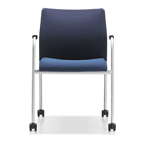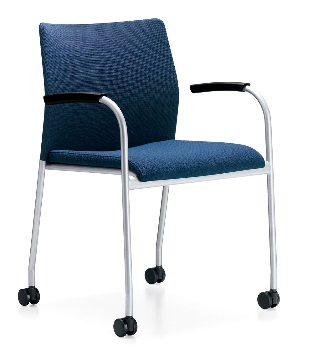 Flit is a side/stacking chair that delivers sizeable comfort in spite of its thin profile. The knit mesh back, available in eleven colors, flexes to the body’s contours. An upholstered seat wraps over the front edge to prevent leg pressure and curves at the back for comfort and support. The chair is available with or without arms, on glides or casters. Counter stool and bar stool versions are available, with and without arms.