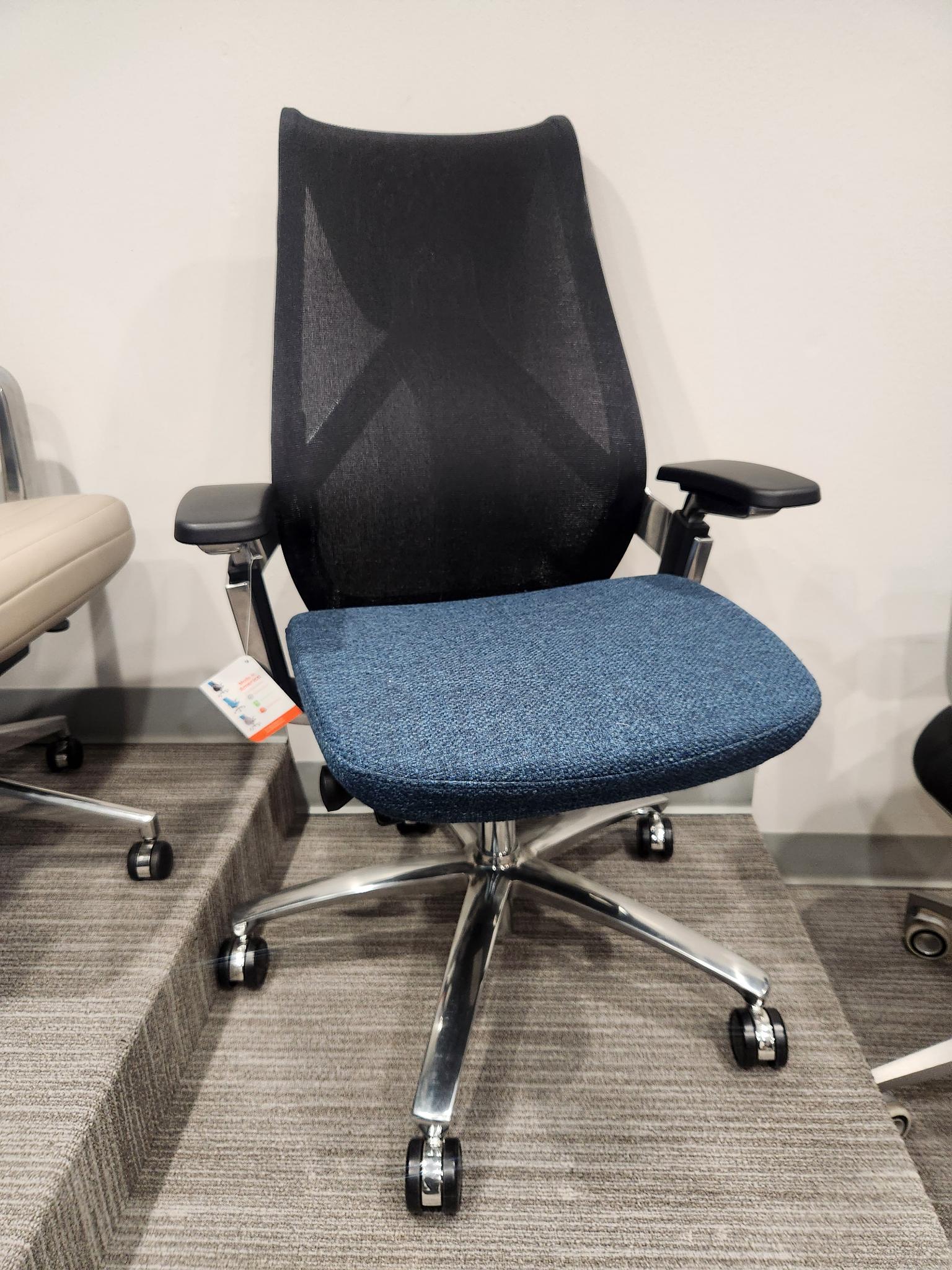 Sol seamlessly integrates technology and supports all the postures users assume throughout the workday. Distinctly reactive to the user, the pivoting back enables users to comfortably shift gears as they work by mirroring natural changes of posture. The sweeping aluminum back design is instantly iconic and the responsive pivot-back technology offers total support—and natural freedom—no matter how much a user moves.